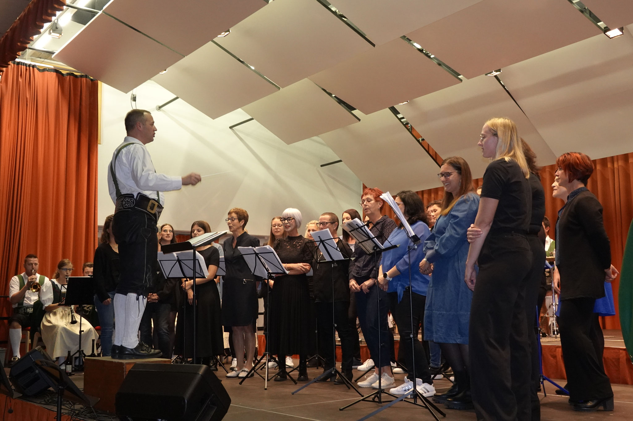 Im ersten Teil des Konzerts stand die böhmische Blasmusik im Mittelpunkt, während der zweite Teil mit moderneren Klängen und der mitreißenden Gestaltung des Chors Tonspur für besondere Momente sorgte.