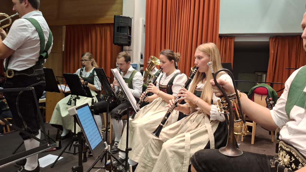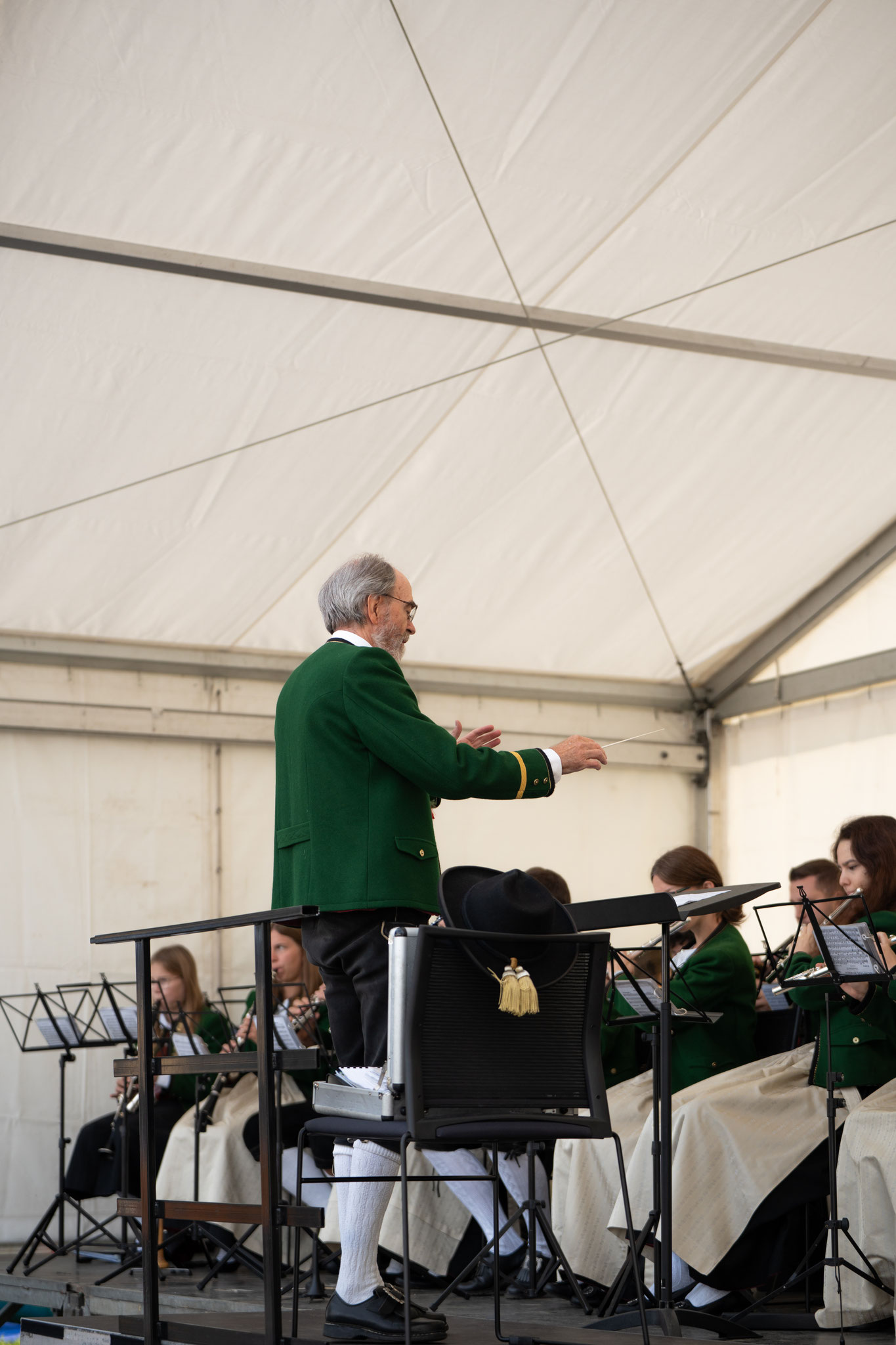 Im Anschluss hatten wir die Ehre, ein 50-minütiges Konzert zu spielen – ein schöner Moment, unsere Musik mit so vielen Zuhörerinnen und Zuhörern teilen zu dürfen. Unter der Leitung unseres Kapellmeisters Werner Goldschald präsentierten wir ein abwechslungsreiches Programm.